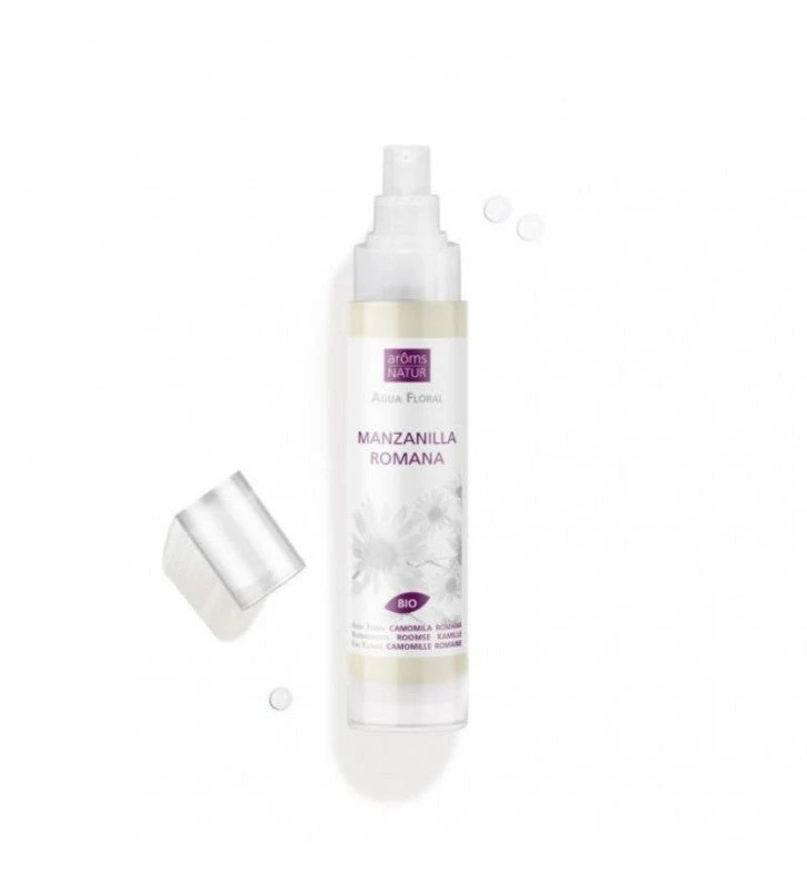 Agua Floral de Manzanilla Romana de Aroms Natur es la destilación al vapor de agua de la manzanilla romana. Tiene gran capacidad de penetración cutánea por lo que es capaz de regular el pH cutáneo. Especial para las pieles sensibles e irritadas que necesiten calma. Descongestiona la piel e hidrata profundamente. Deja la piel suave con una sensación de confort. P roporciona un bienestar inmediato. Su uso externo alivia los ojos cansados.