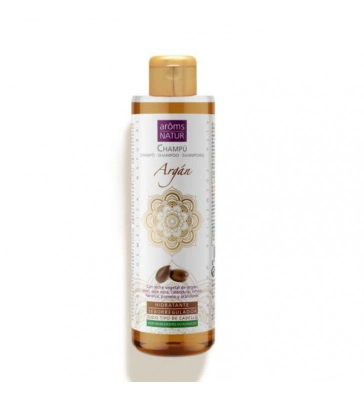 Champú de Argán de Aroms Natur es un tratamiento para todo tipo de cabellos. deja el pelo hidratado, sedoso y limpio. Regula la secreción sebácea del cuero cabelludo. Gracias a este champú podrás tratar tanto el cabello como el cuero cabelludo a la vez.