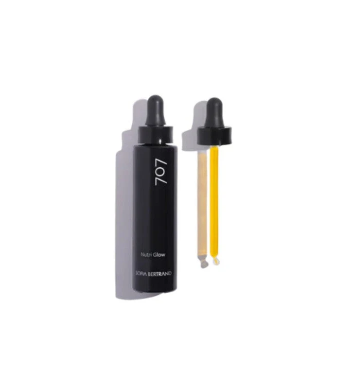 - Después, añadimos el booster 707 Nutriglow para rejuvenecer el rostro. Aplicamos 3-5 gotas y expandimos suavemente por la frente, las mejillas, la barbilla y el cuello. * También podemos alternarlo con elixires y otros boosters, según el tratamiento indicado.