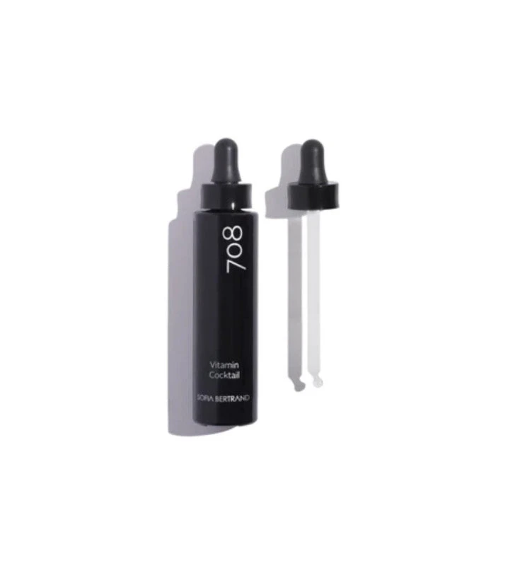 - Después, añadimos el booster 708 Vitamin Cocktail para calmar la piel. Aplicamos 3-5 gotas y expandimos suavemente por la frente, las mejillas, la barbilla y el cuello. * También podemos alternarlo con elixires y otros boosters, según el tratamiento indicado.