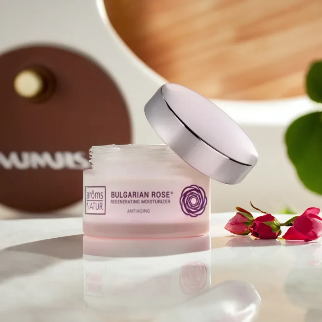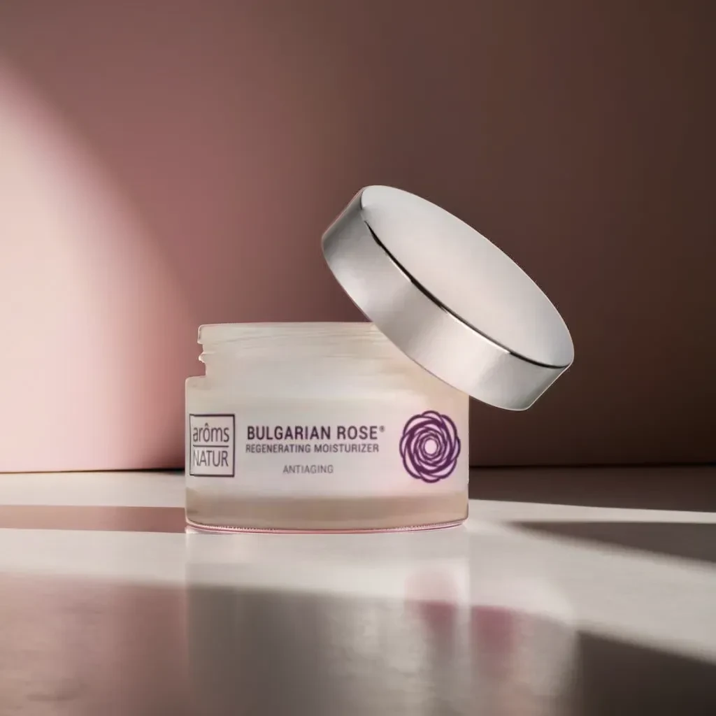 Crema Facial Anti-âge Rose Bulgarie de Aroms Natur es una crema de día antienvejecimiento . regenera la piel de manera intensiva. Regula al función celular del cutis y frena los procesos de envejecimiento que tiene la piel. Aumenta la firmeza y la densidad de la piel. Difumina las arrugas. O xigena y devuelve a la piel su aspecto terso sano y luminoso de manera progresiva. disfruta de una cosmética totalmente natural y vegana. La Rosa Búlgara es la protagonista de esta exquisita crema antiedad, tiene grandes propiedades regenerantes. Además, su aroma natural es indescriptible, te envolverá.