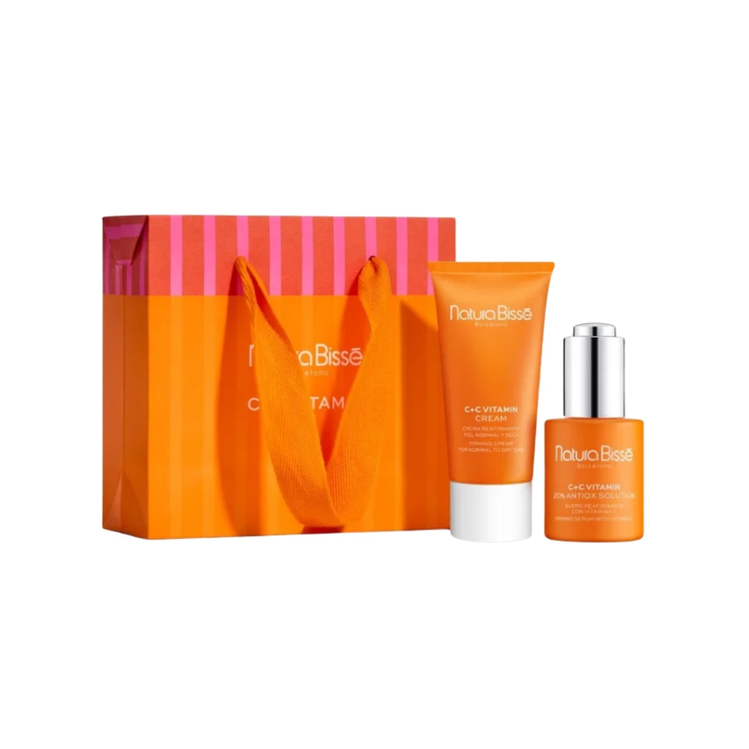 Pack de la línea C+C Vitamin de Natura Bissé a base de Vitamina C encapsulada combinada con ingredientes activos específicos que mejoran la elasticidad y firmeza del rostro además de aportarle luz y firmeza. Ideal para regalar el día de la madre y empezar el tratamiento en primavera.