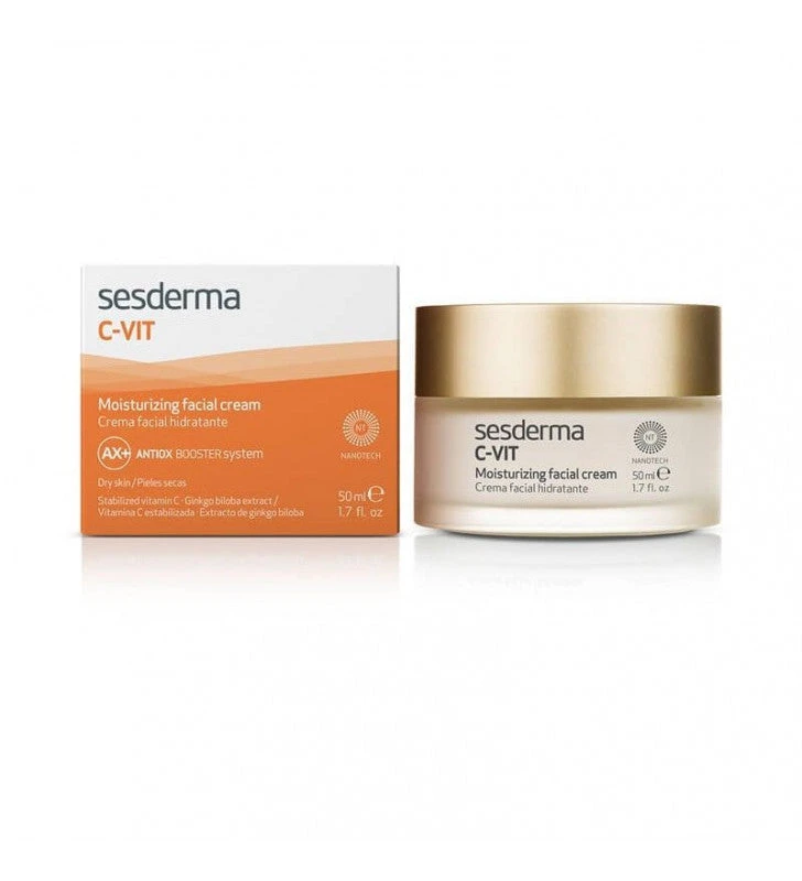 Crema facial hidratante C-Vit de Sesderma es una crema facial hidratante que aporta una gran acción antioxidante y luminosidad al rostro. Esta recomendado para todo tipo de pieles de más de 35 años que quieran prevenir la oxidación de las células y, por tanto, el envejecimiento prematuro y que quieran recuperar la luz natural del cutis.