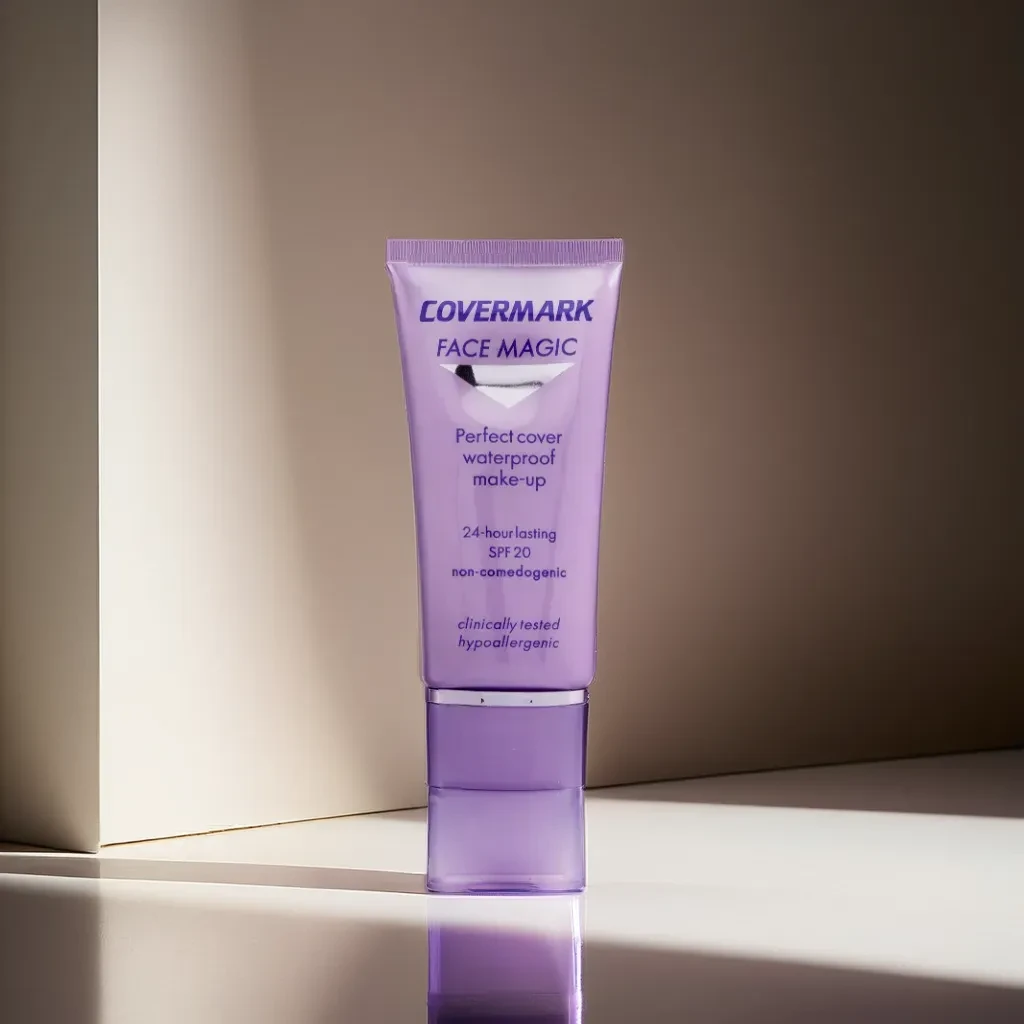 La base de maquillaje Face Magic de Covermark. Es actualmente la base elegida por decenas de maquilladores y agencias de maquillaje profesionales para maquillar a los artistas en cine y televisión. Muchos destacan su acabado «HD Autentico» Esto quiere decir que una televisión HD no se verán las imperfecciones del maquillaje, porque no las hay. Su formulación patentada con Cera de Abeja, logra una máxima elasticidad y una cobertura sin igual. Al actor nunca le desaparecerá el maquillaje delante dela cámara, el sudor o el calor de los focos no hará que se pierda o se mueva el maquillaje. La piel no lo absorbe y reducirá drásticamente el trabajo de retoque. Dura 24 horas en piel y no causa ninguna reacción ni granitos a largo plazo.