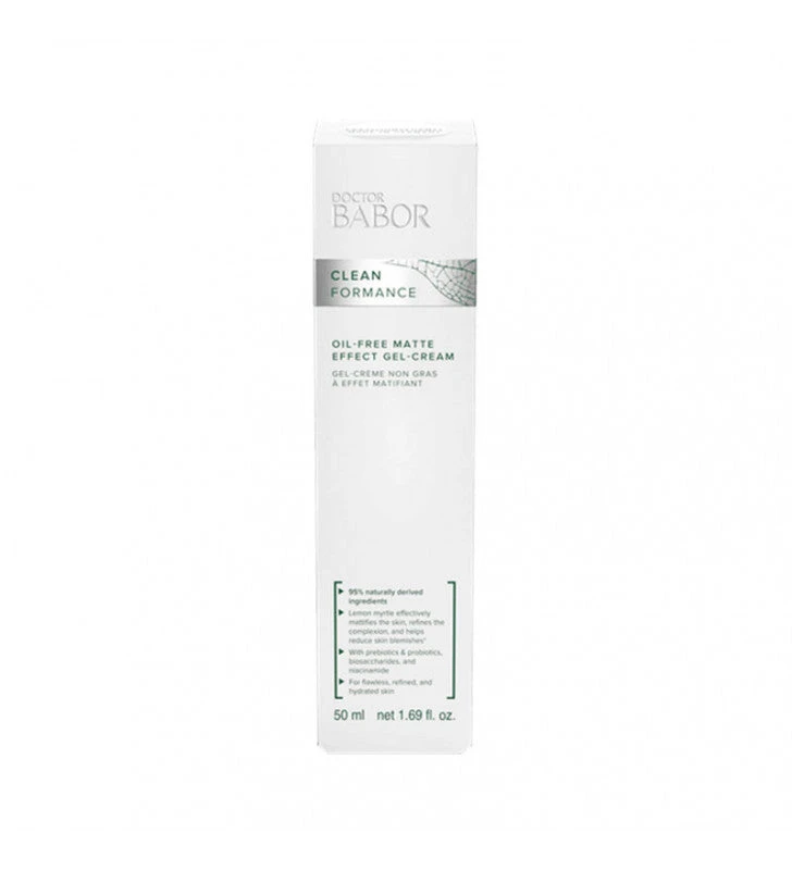 Oil-free matte gel-cream de la línea Cleanformance de Doctor Babor es un gel-crema libre de aceites y de textura ligera específico para pieles mixtas y grasa s que buscan un tratamiento diario hidratante y matificante. Su combinación de ingredientes activos, con un 95% de sustancias de origen natural , le proporcionan a nuestra piel una hidratación intensa, un acabado saludable y un aspecto libre de brillos.