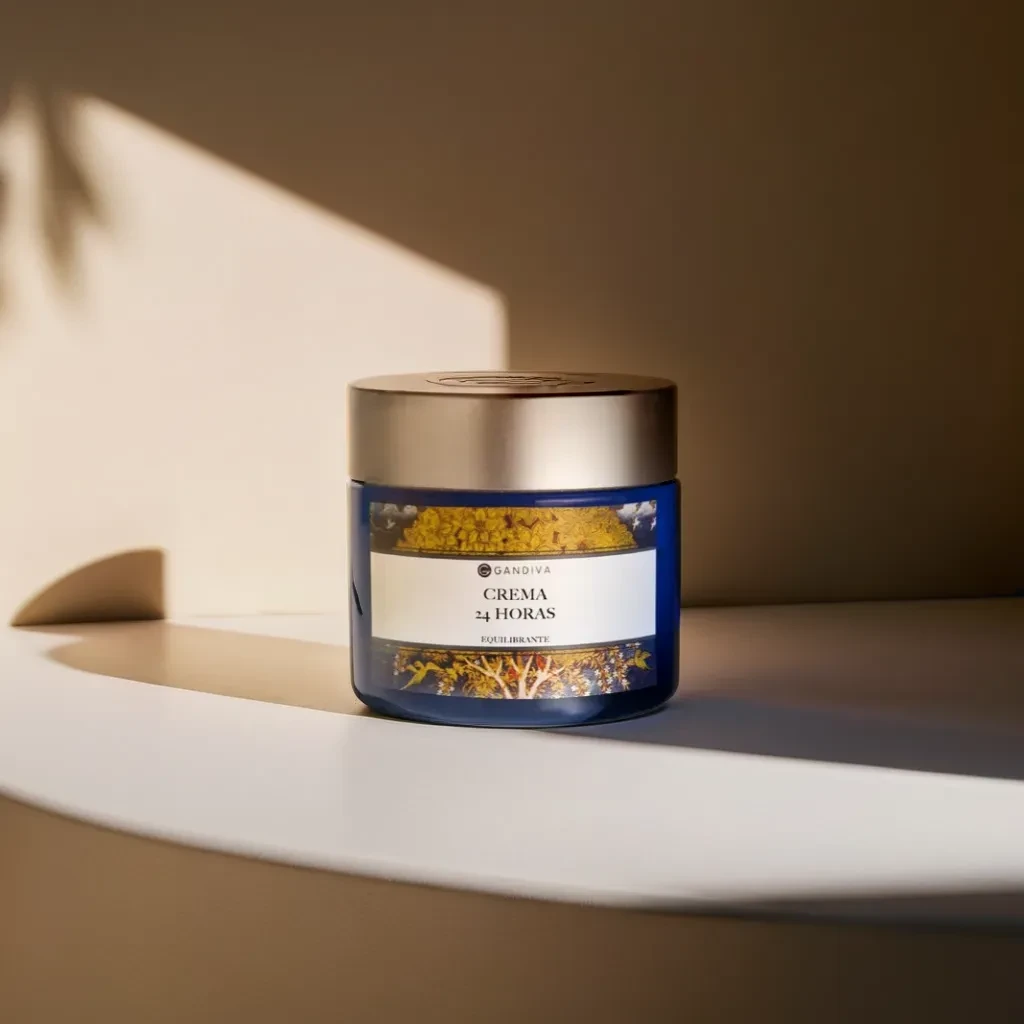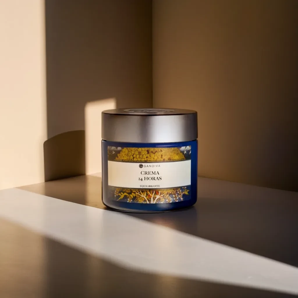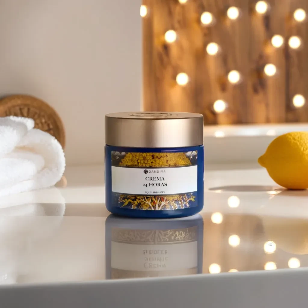 La Crema 24 Horas Equilibrante de Gandiva , hidrata, nutre y equilibra todo tipo de piel. Favorece el crecimiento de nuevas células y combate los signos del envejecimiento. Crema con acción hidratante y nutritiva a la vez.