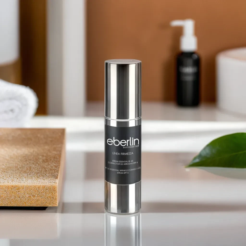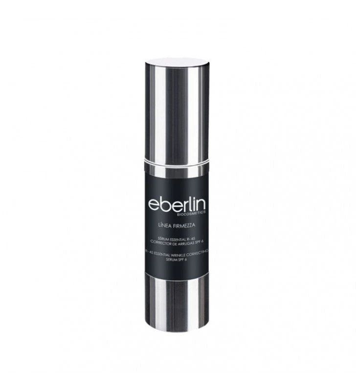 Sérum Essential R-45 de Eberlin es un suero específicamente formulado para pieles maduras. Combate los signos de la edad desde su punto de origen, el ADN celular. Mejora el sostén del tejido, aumenta de forma notable la síntesis de colágeno y elastina. Refuerza el sistema natural de la piel. Repara y bloquea las líneas de expresión. Re fuerza, revitaliza y reactiva la energía celular . Además, protege del fotoenvejecimiento y redefine el óvalo facial. Acelera el metabolismo celular y fija la humedad en la capa externa de la dermis.