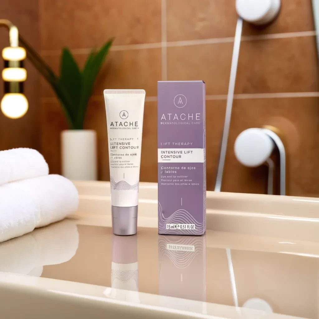 El Contorno de ojos Intensive Lift Contour de ATACHE contiene una fórmula basada en una excepcional combinación de principios que intervienen, de forma natural, y en sinergia, con dos nuevos activos. De inmediato, la piel se vuelve más elástica, firme y tersa. Las arrugas y líneas de expresión se difuminan
