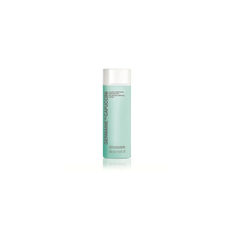 Loción Purificante Equilibrante de Germaine de Capuccini Completa el desmaquillado y realiza una delicada exfoliación a la piel, aportándole una agradable sensación de frescor y confort. Un suave efecto renovador para que la piel luzca cada día más luminosa, con una agradable sensación de pureza y frescor.