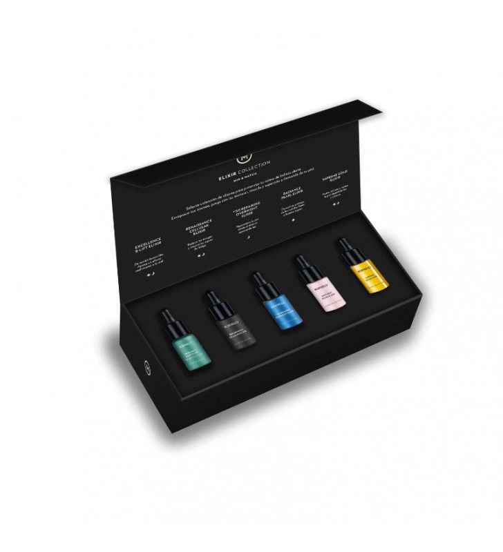 Este pack contiene los 5 elixires de Montibello. La combinación de estos concnetrados mejorará el aspecto final del rostro: