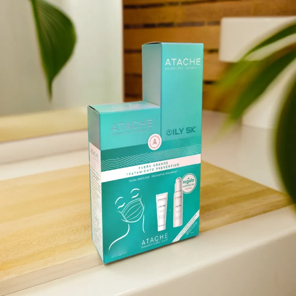 El tratamiento preventivo antiacné que ofrece el nuevo dúo Oily Sk de Atache está indicado para pieles grasas y pieles con tendencia acneica.