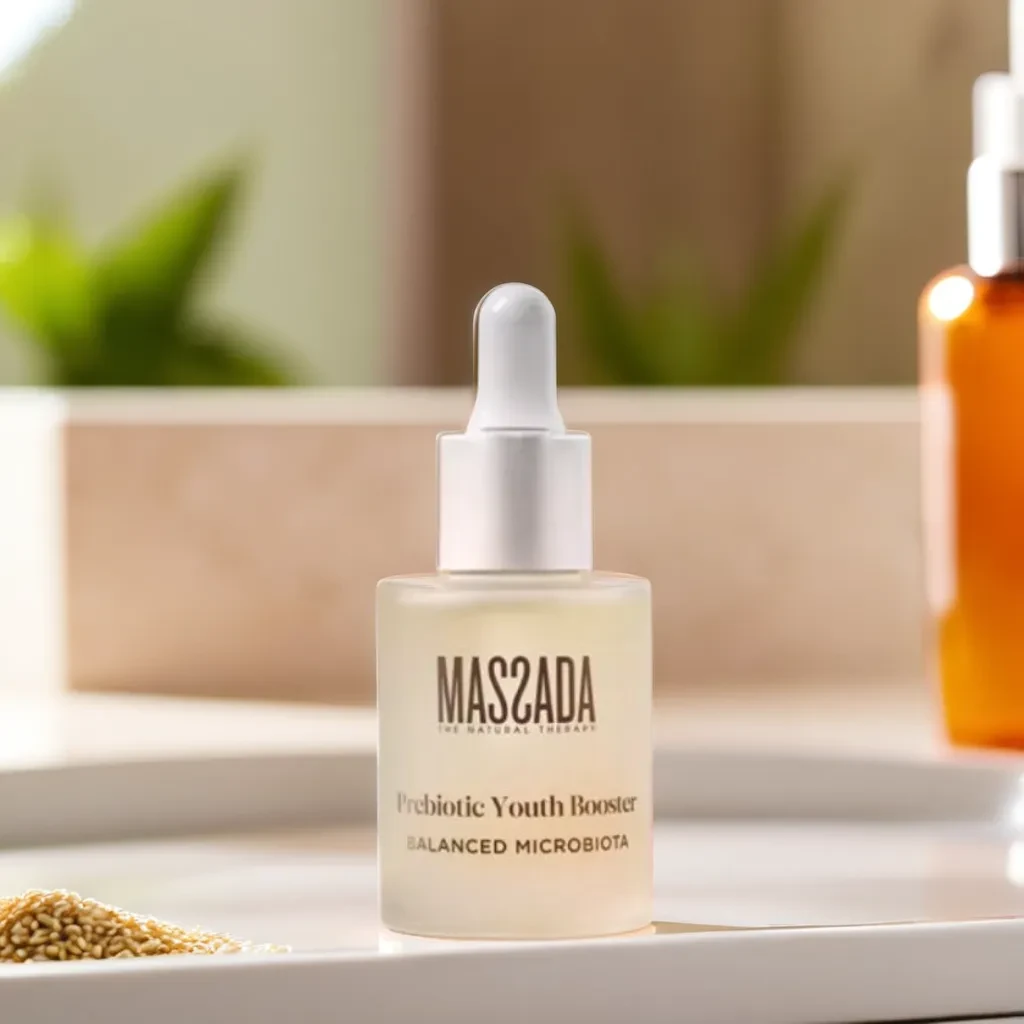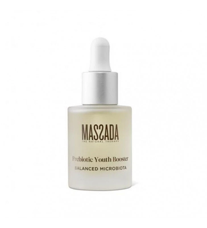Prebiotic Youth Booster de Massada es un serum que potencia la belleza y la juventud natural de la piel. Nutre en profundidad, gracias a su formulación de alto rendimiento. Esta compuesto por un prebiotico exclusivo marino con acciones reequilibrantes. Concentrado por diversos activos de lujo como el ácido hialurónico vegano . Hidrata de forma intensa y calma la piel.