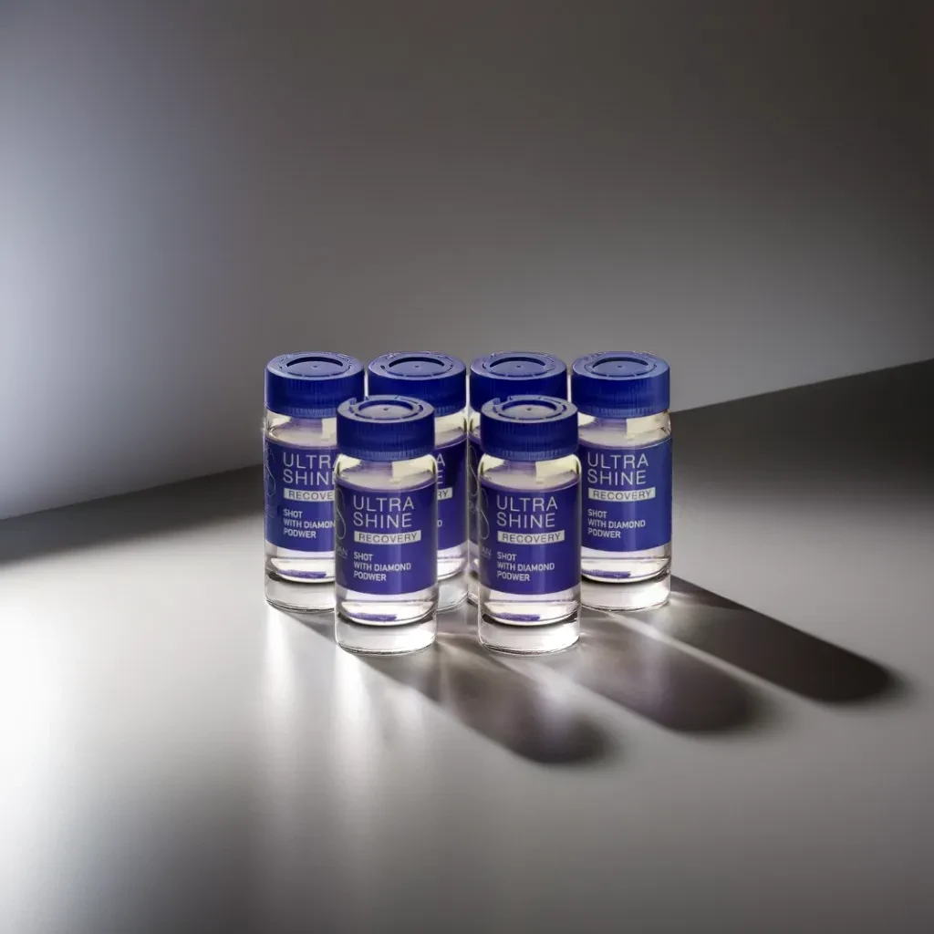 Recovery Ultra Shine de Lendan es un tratamiento para el cabello que aporta un extra de brillo, suavidad y volumen. Se encarga de proteger el cabello, ya que, esta formulado con un complejo activo de aminoácidos y extracto de semilla de uva blanca. Aporta un efecto flash que se ve de inmediato, pero que tiene duración a lo largo del tiempo. Contiene polvo de diamante para proporcionar ese brillo y luz característicos de este producto. Es un tratamiento específico para devolverle la luz y el brillo al cabello dañado, apagado y con falta de luminosidad.