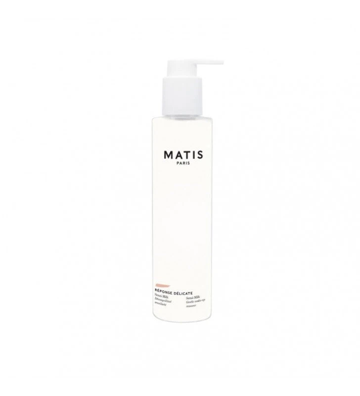 Sensi-Milk de Matis es un limpiador ultra suave sin aclarado, elimina el maquillaje respetando la piel. Aporta una sensación inmediata de confort y bienestar. La piel sensible se limpia, calma y se reconforta. Testado dermatológicamente. Este desmaquillante, indicado para pieles sensibles y delicadas , desmaquilla respetando la epidermis. Su textura combina la suavidad de una leche con la frescura de una loción. En el corazón de la fórmula, cera esencial de azahar con propiedades emolientes y suavizantes , y flor de azafrán para fortalecer la barrera cutánea y calmar las sensaciones de malestar. La piel sensible se limpia, limpia y calma.