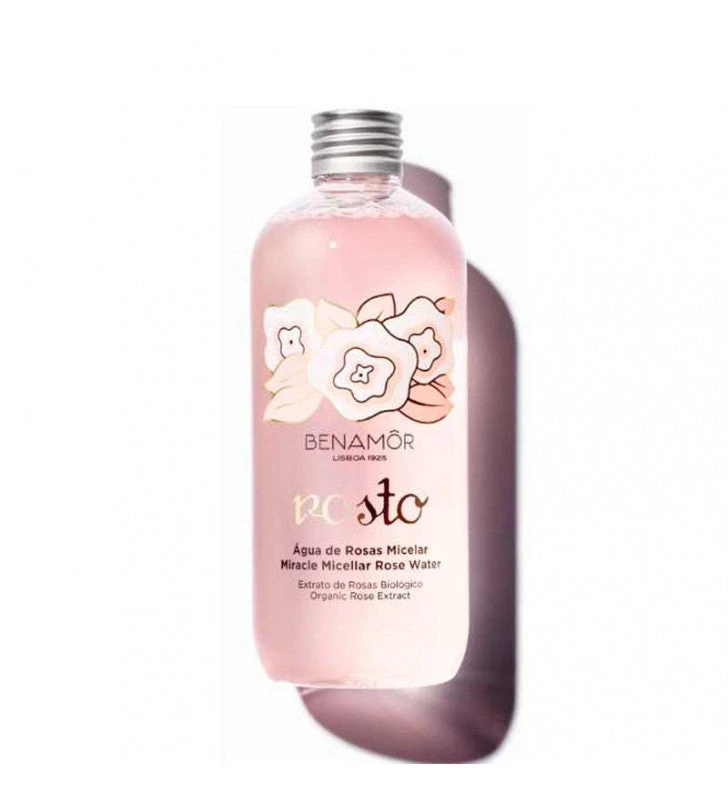 Miracle Micelar Rose Water es un agua micelar elaborada con Extracto de Rosa Orgáni ca de la línea Rostro de Benamôr. Inspirada en una antigua receta de la firma, este agua micelar de rosa consigue un desmaquillado instantáneo del rostro mientras calma y refresca la piel. Un esencial de belleza elaborado para todo tipo de piel.