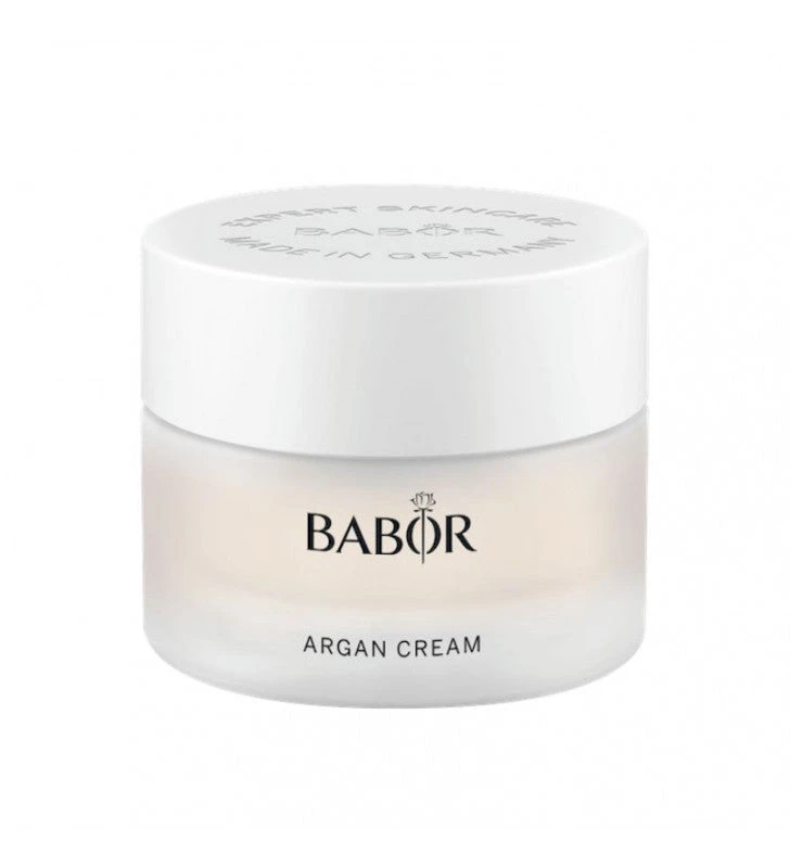 Skinovage Classic Argan Cream de Babor es una crema rica y nutritiva 24 horas que incluye aceite de argán el cual se suministra a la piel intensamente al igual que los lípidos. Gracias a ello deja una sensación suave y flexible en la piel, sin tiranteces. Tanto la piel seca y muy seca recuperan su suavidad y elasticidad . Recupera las pieles extremadamente secas gracias a su aporte de humedad y lípidos importantes. Cuidado completo y rico que mantiene las funciones naturales de la piel . Protege la piel contra los factores nocivos del ambiente.