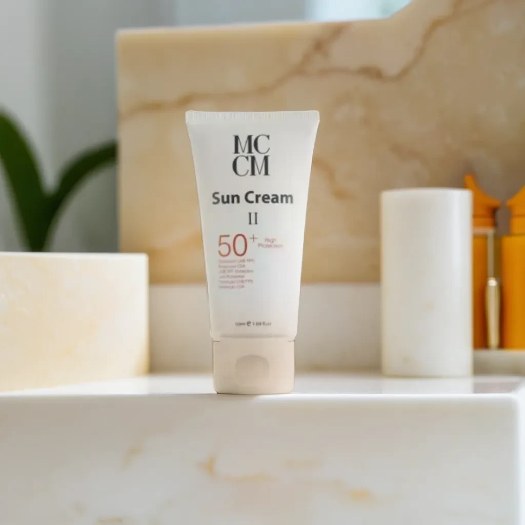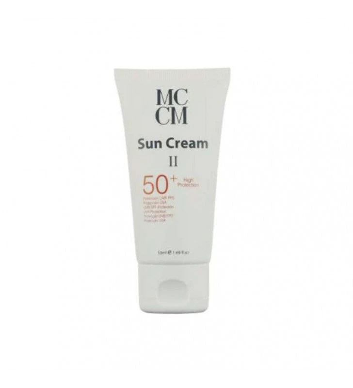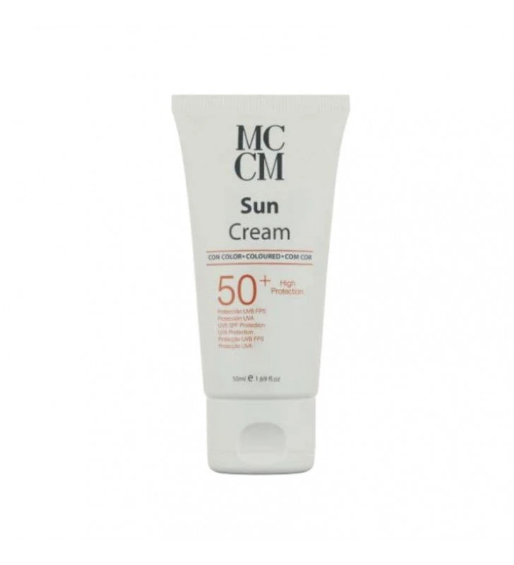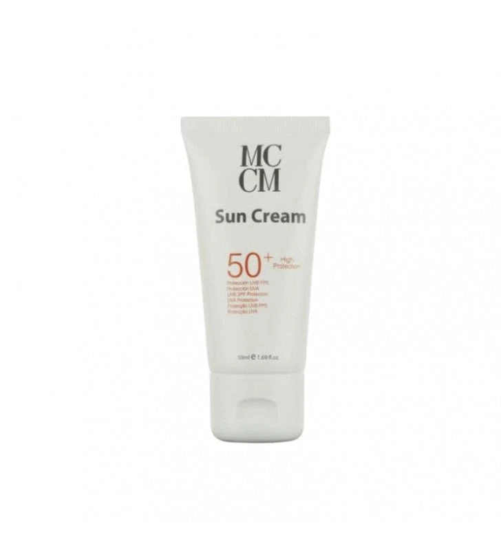 Sun Cream 50+ de MCCM es una crema solar hidratante y protectora. Protege la piel de los efecto perjudiciales que provienen de la exposición solar. Se puede aplicar sobre pieles sometidas a tratamiento quirúrgicos, láser o peelings químicos . Se encarga de proteger la piel del rostro y cuerpo de la radicación UVB y UVA, previene el fotoenvejecimiento , evita la aparición de eritemas solares y manchas en la piel. Está disponible con color, para aportarle a tu piel luminosidad y vitalidad. Suaviza la piel al mismo tiempo que la protege . Resistente al agua.
