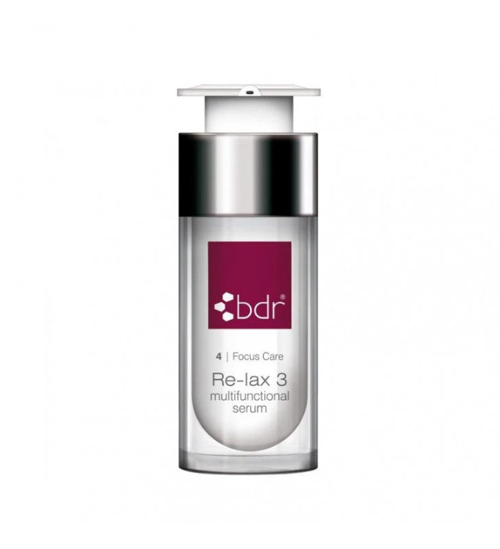 Re-Lax 3 de BDR es un suero que reafirma y regenera todo tipo de pieles. Estimula la creación de colágeno y elastina , esto reduce las arrugas y repara la piel en profundidad. Proporciona volumen a la piel que hace desaparecer las líneas de expresión . Está formulado con las más altas biotecnologías para retrasar los procesos de envejecimiento en mucha capas del tejido cutáneo. Además, proporciona a la piel un efecto relajante de calma, dejando un efecto sedoso y firme.