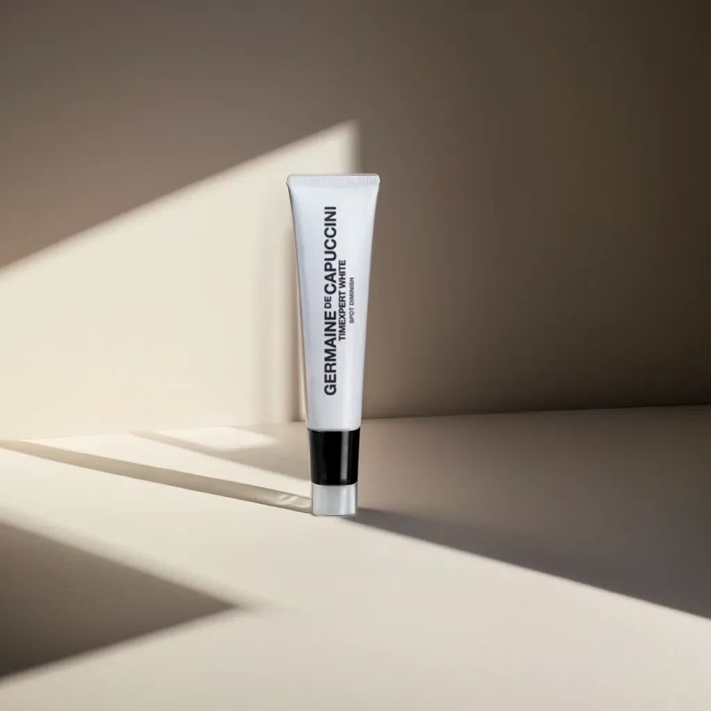 El tratamiento Spot Diminish de Timexpert White de Germaine de Capuccini está creado para tratar de forma puntual manchas oscuras del rostro, cuello, escote o manos causadas por el fotoenvejecimiento. disminuye visiblemente las ,manchas causadas por el sol y la edad y le devuelve a la piel un aspecto más brillante, luminoso y joven.